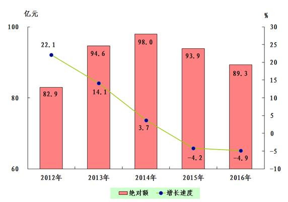 全年全市財政總收入169.0億元,下降12.2%。其中,增值稅57.4億元,下降3.5%;企業(yè)所得稅25.6億元,下降27.1%;個人所得稅5.7億元,下降15.8%;營業(yè)稅10.9億元,下降37.4%;資源稅19.0億元,下降9.8%。一般公共預算收入89.3億元,下降4.9%。其中,稅收收入55.3億元,下降5.4%。一般公共預算支出173.2億元,下降3.9%。其中,科學技術(shù)支出下降56.6%,教育支出下降8.0%,農(nóng)林水事務(wù)支出下降0.7%,社會保障和就業(yè)支出增長2.4%,文化體育與傳媒支出增長4.3%,醫(yī)療衛(wèi)生和計劃生育支出增長6.1%,節(jié)能保護支出下降15.3%。