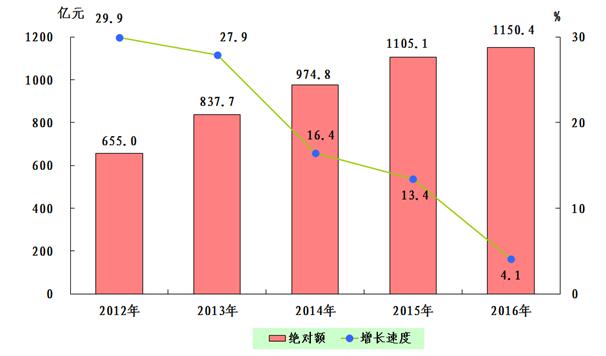 圖1:2012—2016年全市生產(chǎn)總值及增長速度