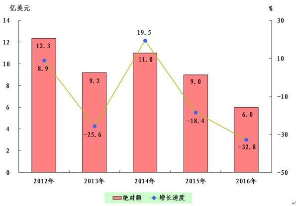 圖7:2012-2016年外貿(mào)進出口總額及增長速度