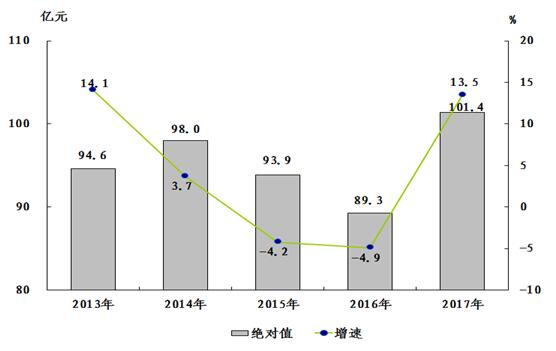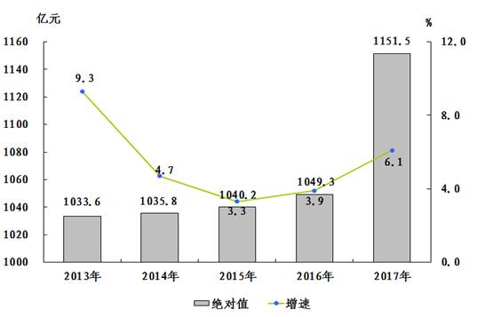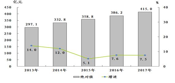 圖1:2013—2017年全市生產(chǎn)總值及增長速度