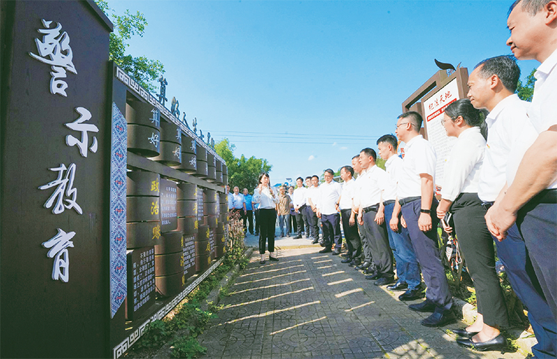 在全黨開展黨紀學(xué)習(xí)教育,是加強黨的紀律建設(shè)、推動全面從嚴治黨向縱深發(fā)展的重要舉措。當前,各地區(qū)各部門精心組織實施,不斷推動黨紀學(xué)習(xí)教育走深走實。圖為2024年5月23日,在廣西融水苗族自治縣一處廉政文化園,黨員干部接受廉政教育。 視覺中國 龍林智/攝