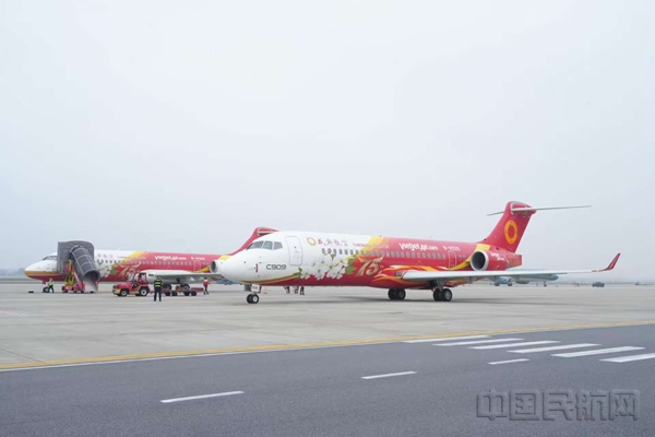 國(guó)產(chǎn)C909濕租給越捷航空后,投入越南國(guó)內(nèi)航線運(yùn)行(中國(guó)商飛及成都航空供圖)